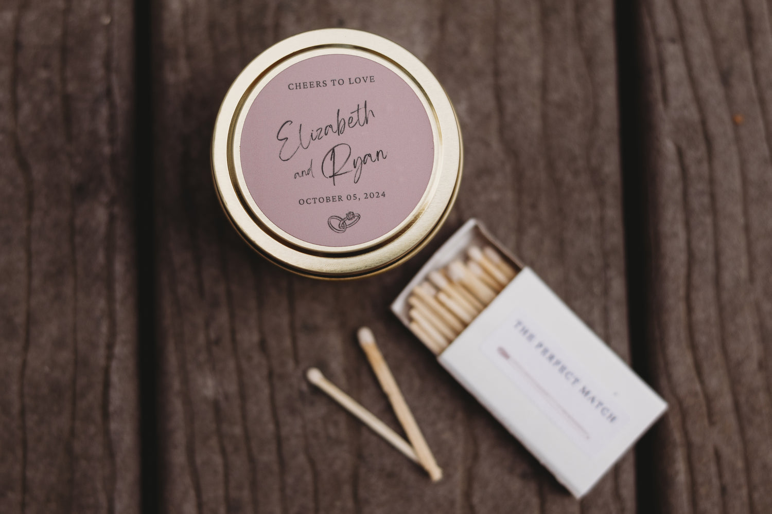 Make your big day unforgettable with custom candle favors. Choose your favorite scents, colors, and labels to match your wedding theme. Each hand-poured candle is crafted in Maine and designed to give your guests a lasting memory of your celebration.